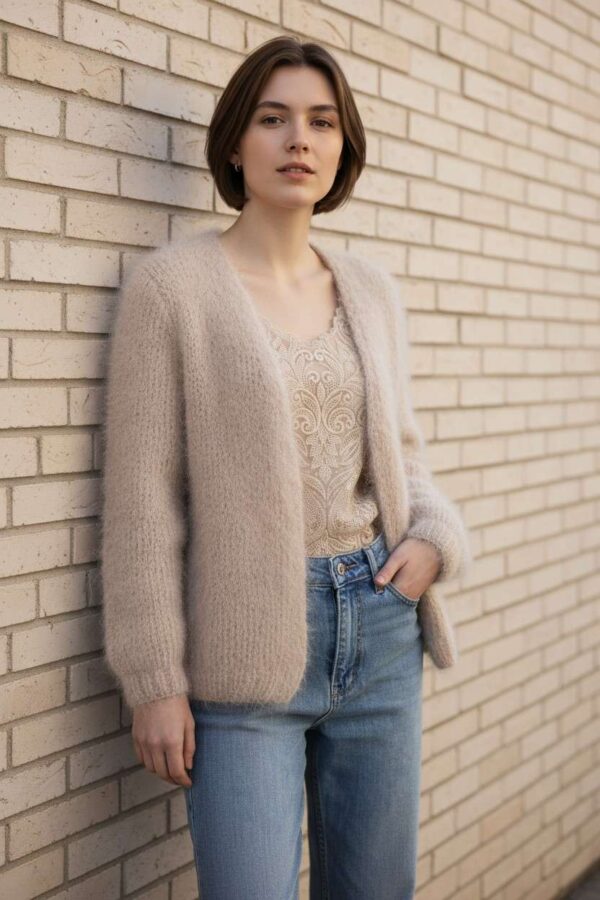 Jachetă/Cardigan Tricotat Manual din Mohair – Eleganță și Confort la Superlativ