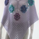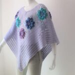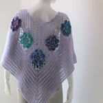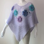 Poncho crosetat manual din fir de angora firul de baza mov si bumbac- acryl florile crosetate .
