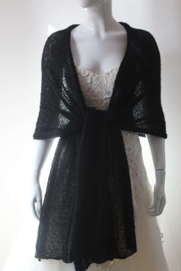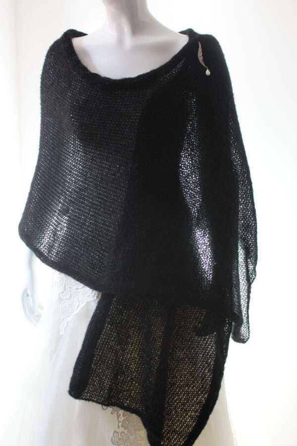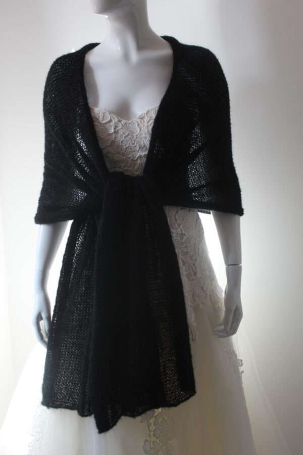 Sal dreptunghiular tricotat manual din mohair cu matase