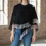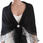 Sal negru tricotat elegant, din mohair si fir efect volanase.