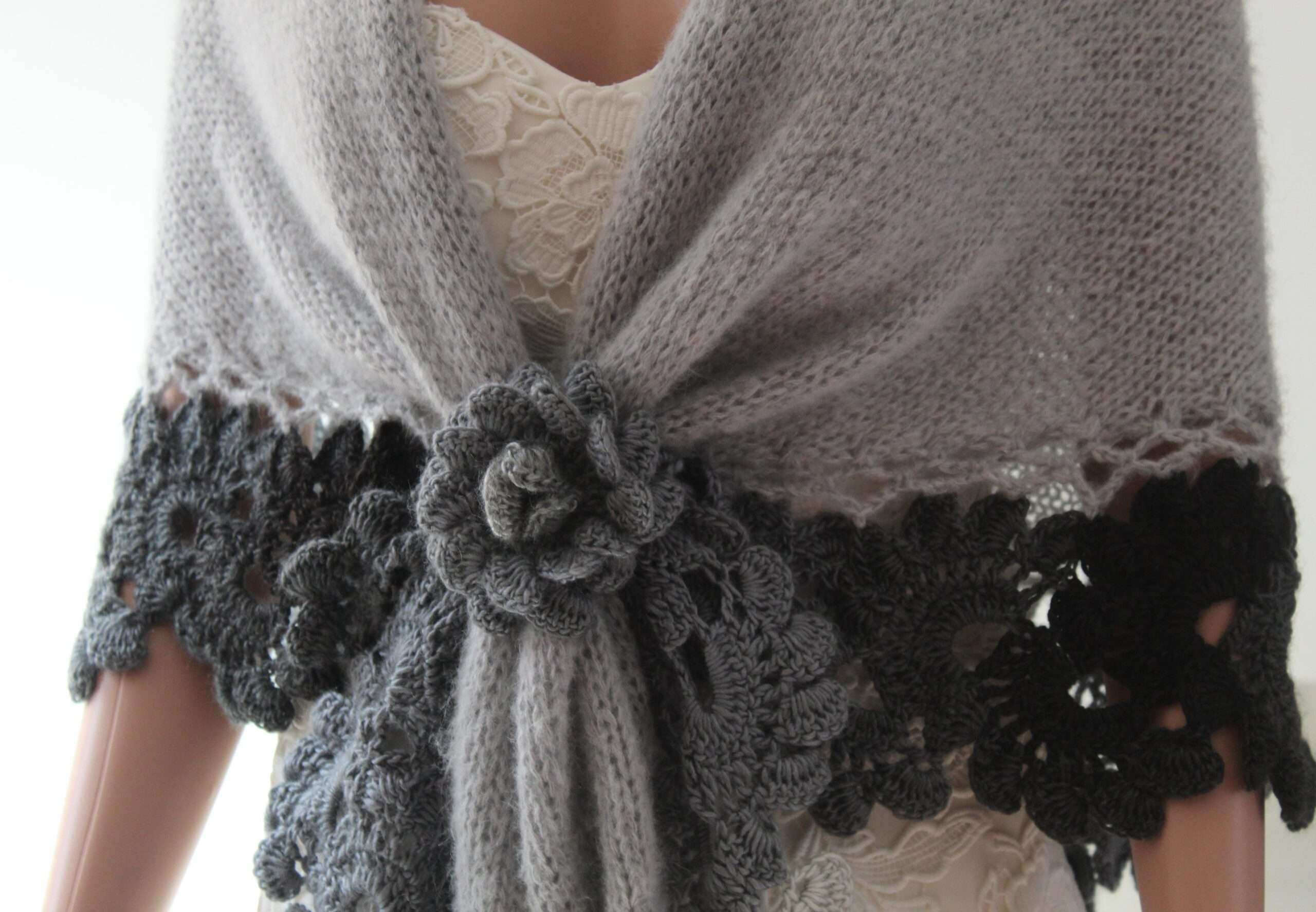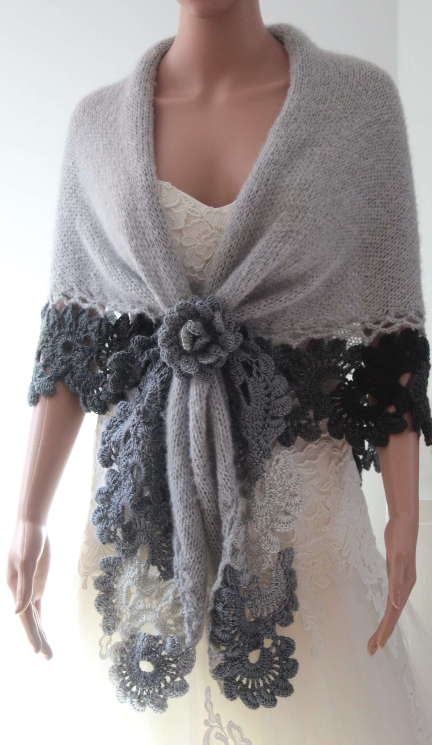 Sal, tricotat, elegant, din mohair si fir degrade.