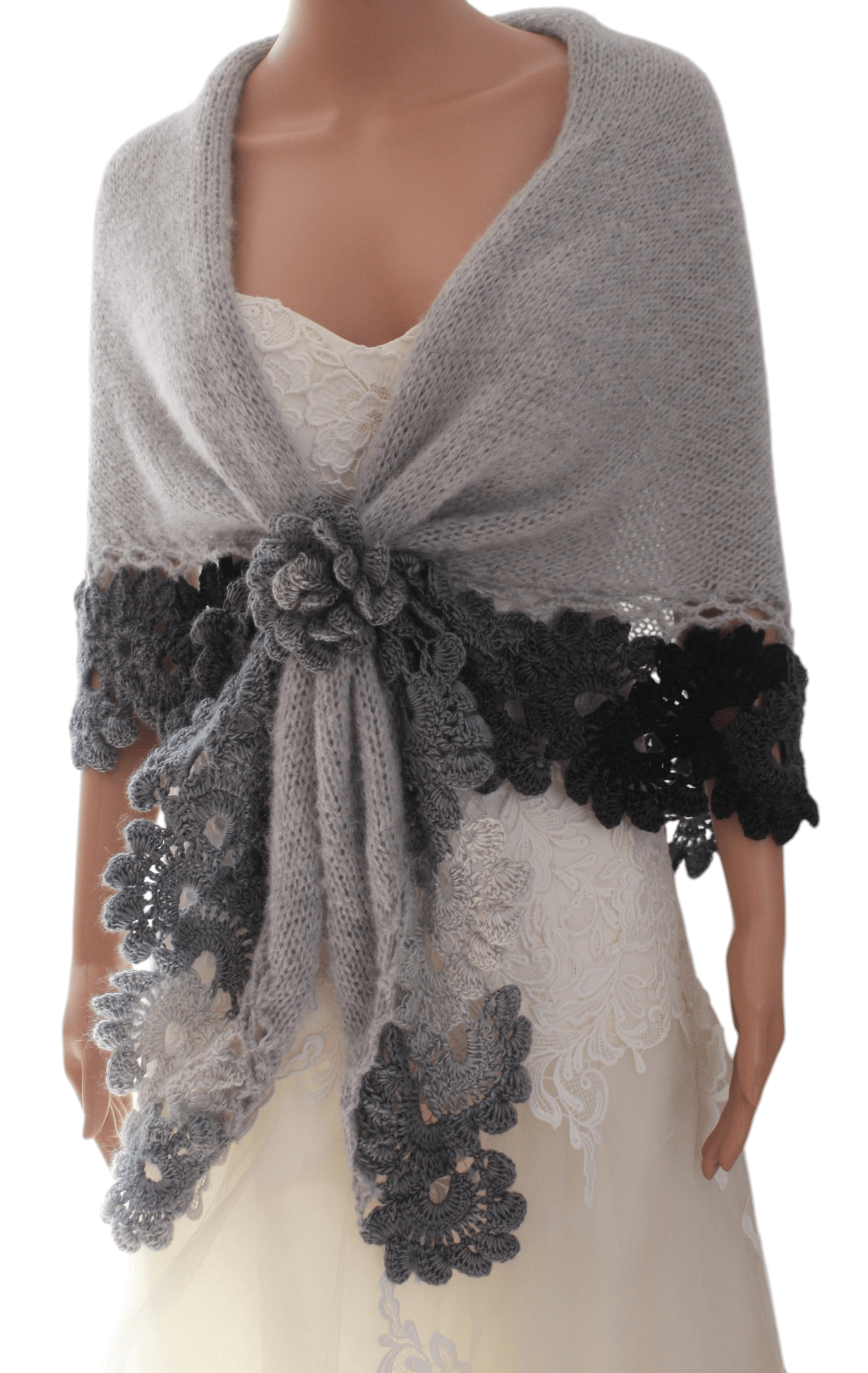 Cu un design sofisticat și un fir efect subtil, acest șal devine instantaneu un element definitoriu al eleganței tale. Poartă-l cu încredere la ocazii speciale sau în zilele obișnuite pentru a adăuga un aer de lux și stil fiecărei apariții. Fie că îl așezi grațios peste umeri sau îl înfășori cu nonșalanță în jurul gâtului, acest șal tricotat manual din mohair este alegerea perfectă pentru cei care apreciază autenticitatea și rafinamentul în modă.